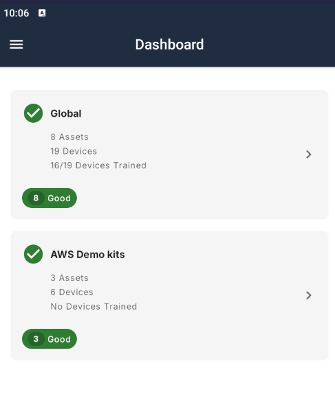 From the list of Assets in the Treon Connect Mobile app, tap the specific asset you want to attach the sensor to in order to proceed with commissioning the sensor.
