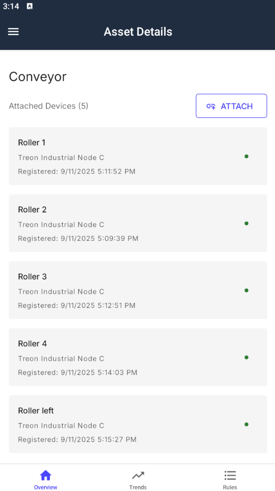 Reading sensor measurement data (Trends) in the Treon Connect Mobile app