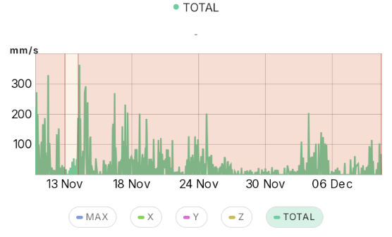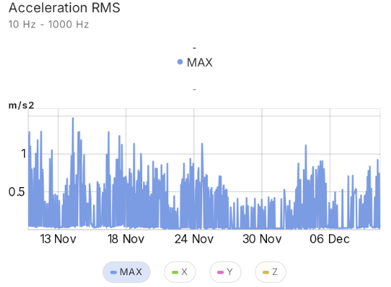 In this example, the measurement value for the KPI Acceleration RMS was 0.54 on 12th February 2025 at 10:30 am.