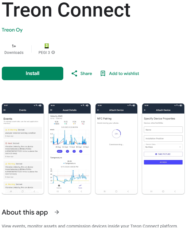 You can also go directly to the app page using this link: Treon Connect app on Google Play.