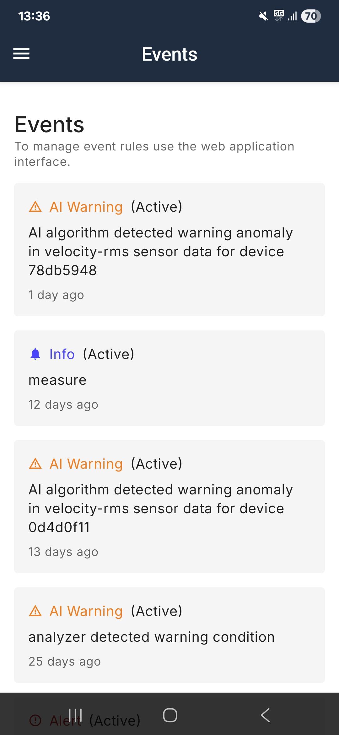 After the event has been triggered, it will show in the app of all people who have access to the Asset the measurement is made from.