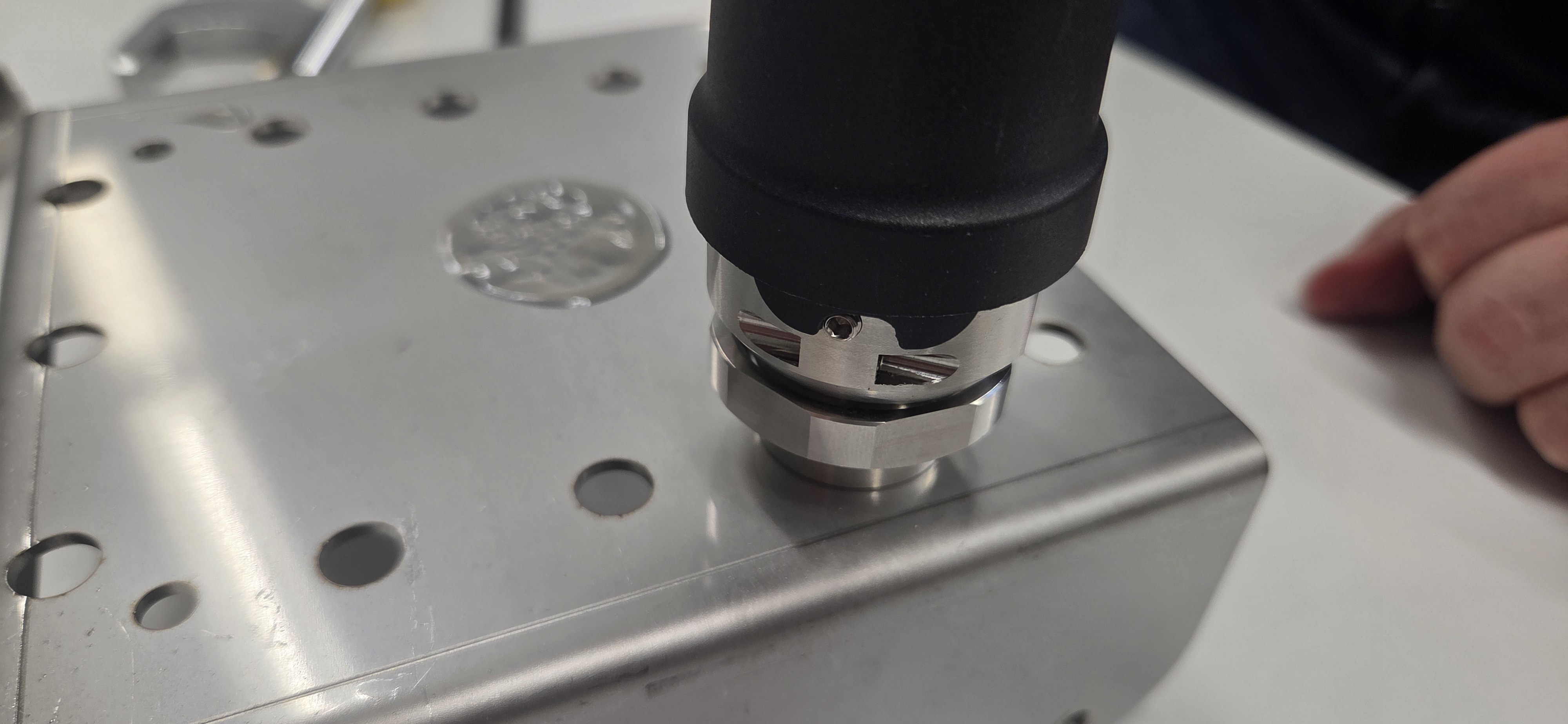 Start with carefully drilling an M6×1 or M8×1.25 hole into the machine surface at the location you have chosen for the measurements. Please consider carefully where you drill the hole. If you are unsure, please consult the manual of the machine or the manufacturer.